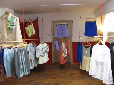 The shop floor featuring our glowing J&KE sign, products in the background are chairs by Kethi Copeland, handbags by Diane Powell & installation by Emma Hamshare.